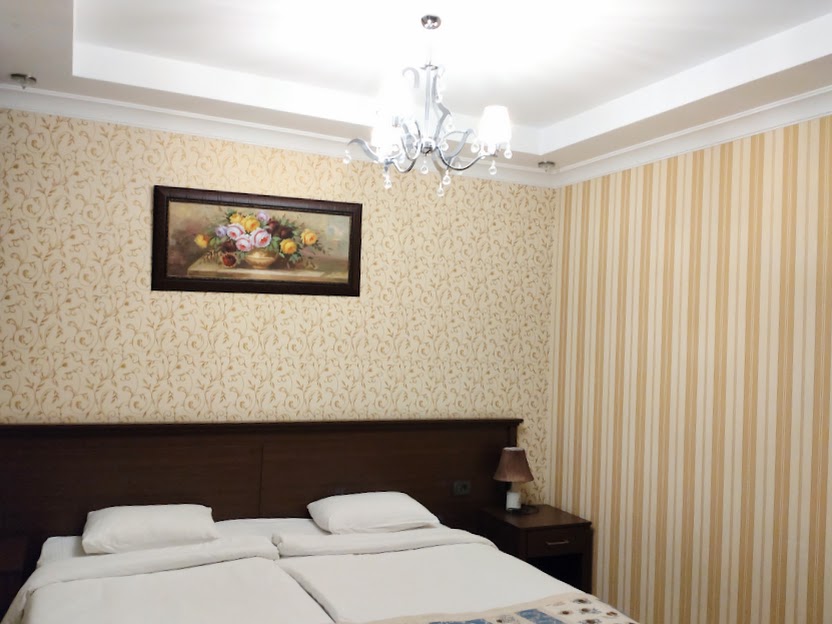 Hotelli ja huone ovat vanhanaikaisia, mutta oikein mukavia. Viihdyn. On oikeasti aukeava ikkuna, vesipatteri, joka toimii vääntämällä nupista. Korkeutta huoneessa riittää, on vaatekomeroita. Kokolattiamatto on siinä ja siinä. Kaikki toimii, paitsi että pistorasia jäi käteen eikä ollut wc- paperia. Kaikki hoitui kuitenkin vauhdilla."